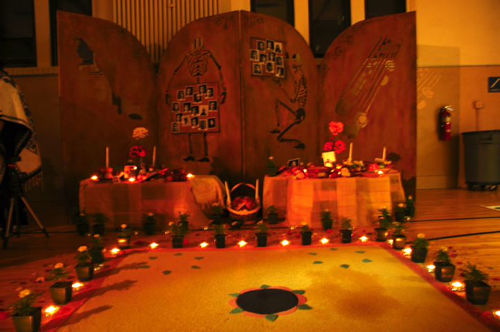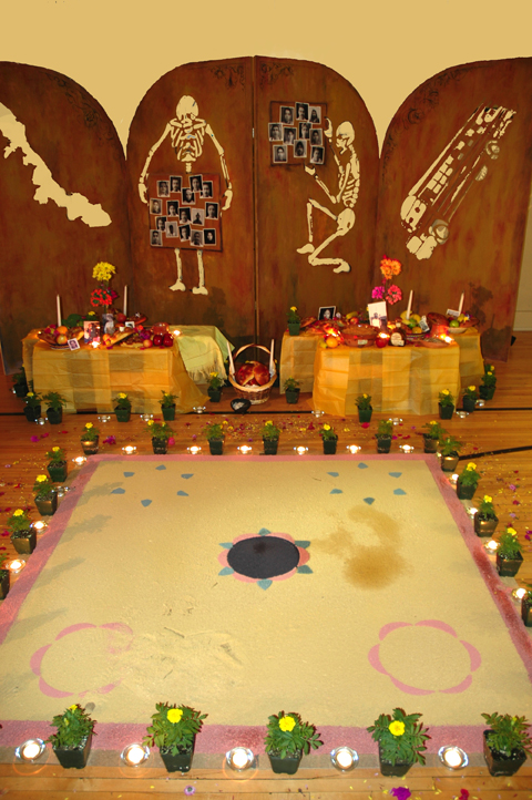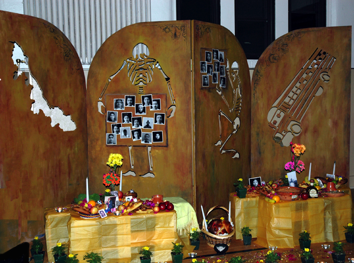 Collaborative Piece with Found Objects, Prints and Offerings for the Day of the Dead
